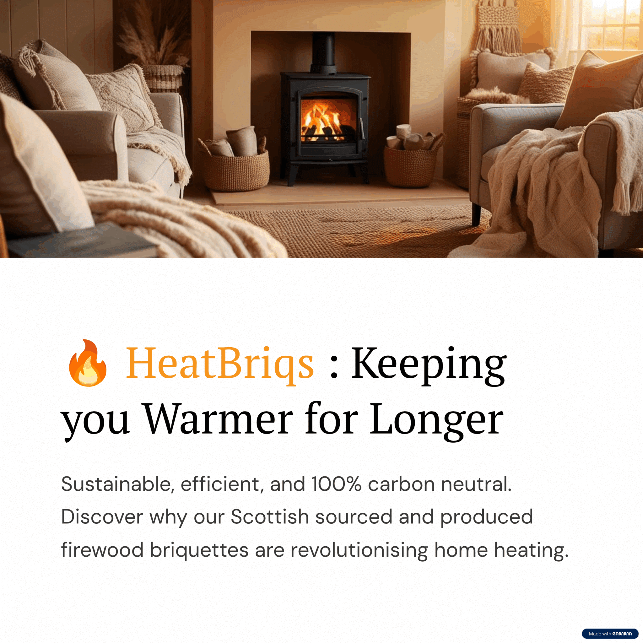 HeatBriqs Firewood Briquettes produce a long and continuous heat for around 2 hours. Burning hotter and longer than traditional fuels, HeatBriqs Firewood briquettes provide maximum energy and reduce the need for frequent refuelling.